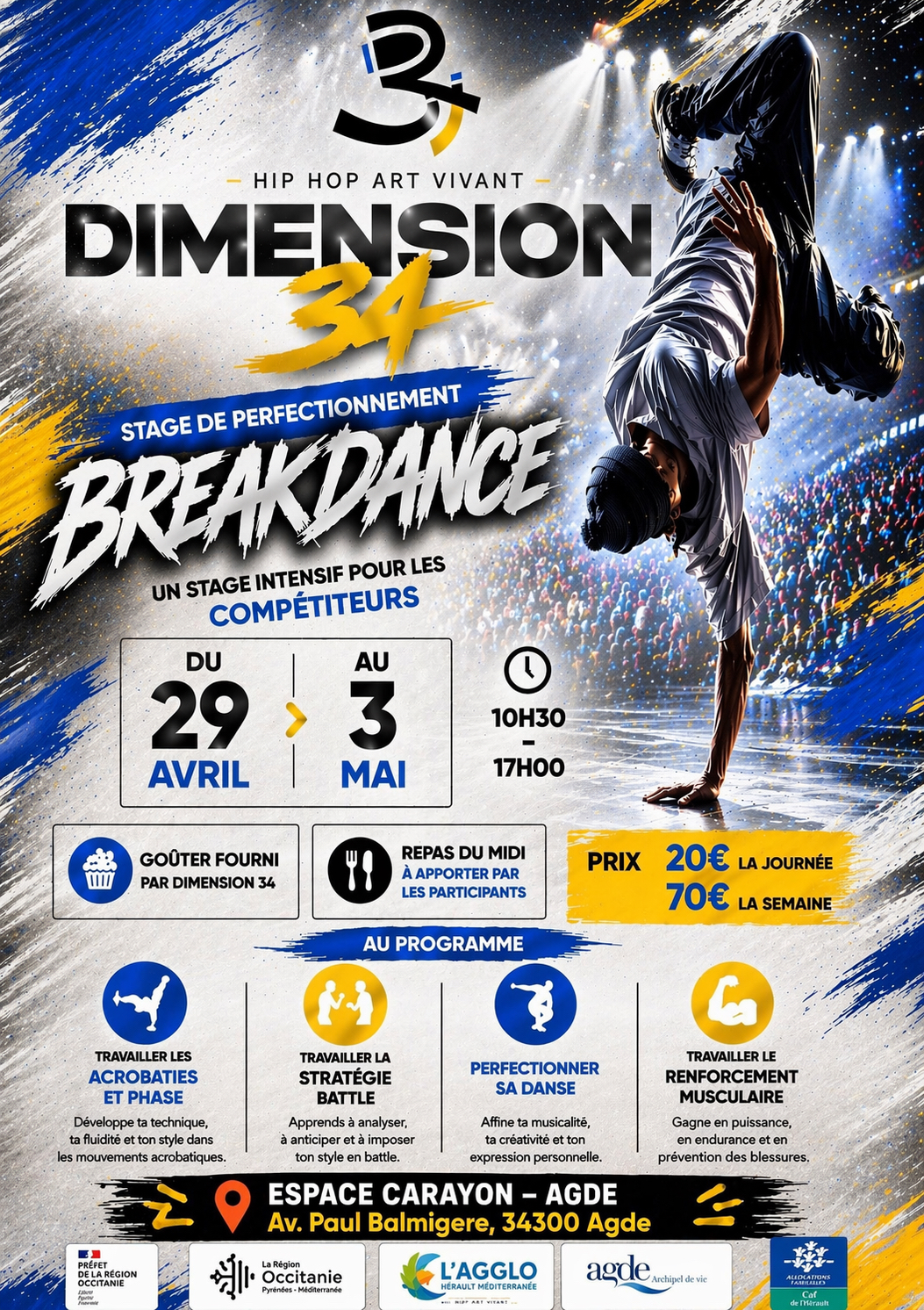 Dans le cadre de son développement des pratiques urbaines, Dimension 34 organise un stage de perfectionnement en breakdance, destiné aux danseurs souhaitant progresser et atteindre un niveau supérieur, notamment en vue de la compétition. Ce stage intensif se déroulera du 29 avril au 3 mai, au sein de l’Espace Carayon à Agde, et s’adresse aux […]